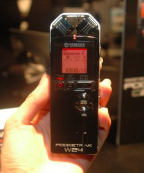 会場で紹介されたリニアPCMレコーダーは、先日発表された「POCKETRAK W24/C24」(関連ニュース)の2モデル。どちらも最高24bit/96kHzのリニアPCM録音に対応する。大口径・高感度の90度X-Y型指向性ステレオマイク搭載の「W24」はより本格的な高音質録音を追求したモデル。一方で「C24」はリニアPCMレコーダーとして世界最小・最軽量を実現。手軽な使用感にこだわって設計されている。