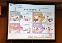 本日の発表会では3社が提案する「デジタルライフ」のイメージを紹介。LAN HDDに大量のデータを保存して、ホームネットワークで共有して楽しむスタイルや、“まだ使える”アナログテレビを買い替えずに、外付け地デジチューナーの活用で地デジを視聴する提案や、ネットワークオーディオでお気に入りの音楽を、家庭内の様々な部屋や外出先でも自在に楽しめるスタイルなどがアピールされた。