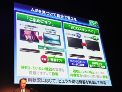 またVIERAについては、同社の白物家電に搭載して以降、多くのユーザーから支持を集めている「エコナビ」の機能を採用したことについても西口氏は言及する。「ユーザーの視聴・使用環境に合わせてテレビが画面の明るさコントロールや節電を自動制御してくれる機能を搭載した。またVIERAとDIGAを接続している場合は、周辺機器の制御も行い節電を実現するなど、先進的なエコ機能が充実している点も新製品の魅力だ」とアピールした。
