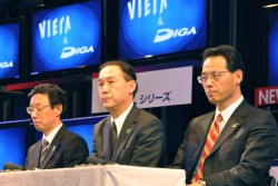 本日の新製品発表会で執り行われた質疑応答には、デジタルAVCマーケティング本部長 西口氏のほか、パナソニック(株)AVCネットワークス社PDPテレビBU長の上原宏敏氏、AVCネットワークス社 ビデオBU長の杉田卓也が出席した。