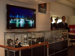 そして、入口そばには会員登録者向けのポイントサービス用チェックイン機を設置しているほか、春からの新生活に向けたライフスタイル提案を行う内容のコーナーを展開。“BRAVIA”「KDL-22EX300」やPSP go、“bloggie”「MHS-PM5K」の直販限定カラーであるバイオレットモデルなどを展示している。同スペースは季節に合わせて展示内容を随時入れ替えていくという。