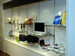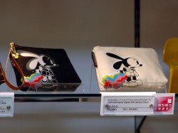 なお、実際に同ストアでの在庫販売を行っている展示品については、製品名を記載したプレートの横に「お持ち帰りできます」という表示も併せて展示。TransferJet対応クレードル「TJS-1」なども販売するほか、ミッキーマウスの原型「オズワルド・ザ・ラッキーラビット」をあしらった数量限定の“Cyber-shot”用ポーチ「CC-CS-O」など珍しい商品も持ち帰り可能品として展示されていた。