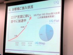 UQコミュニケーションズ(株)は、同社の高速無線通信サービス「UQ WiMAX」の現状と今後への展望などを説明するメディア向けイベント「UQコミュニケーションサロン」を本日開催した。