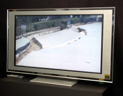 15年前の阪神・淡路大震災の映像を3D上映するNHKメディアテクノロジーによる参考出展は多くの人でにぎわいをみせていた。使用するディスプレイは、走査線毎に正反対の特性を持つ偏光フィルターをディスプレイに貼付けることで小型・軽量化を実現した独自の3D対応の液晶ディスプレイ。偏光メガネを装着して視聴する。
