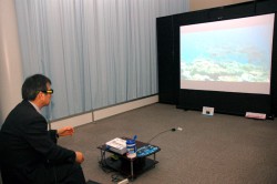 2つのレンズと2つのCCDで構成される、2組の撮像システムを搭載した“3Dデジカメ”「FinePix REAL 3D W1」。本機で撮影した画像を、3Dで上映しています。メガネをかけてじっくり楽しんでみてください。