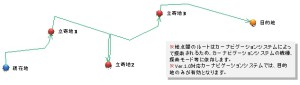 最新のVer.1.1では、新たに複数の立寄地を含む複数地点登録に対応。携帯電話のウェブサイトで取得した複数のドライブ情報を自動的にカーナビに送り、ルート計算に利用できる。従来からのメール送信機能と組み合わせて、待ち合わせ相手に目的地や立寄地の到着予想時刻などをメールで知らせるといった使用が可能になる。