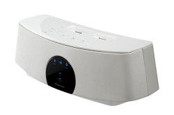 【SPEC】●アンプ部実用最大出力:10W+10W ●スピーカー形式:位相反転式 ●スピーカー:66mm コーン型フルレンジスピーカー、77mmコーン型パッシブラジエーター ●再生周波数帯域:60〜20,000Hz ●入出力端子:iPodコネクター1、映像出力1、オーディオ出力1、USB(タイプA)1、AUDIO IN1、HDMI1 ●FMチューナー:6.0MHz〜90.0MHz(100kHzステップ) ●消費電力:20W ●外形寸法:370W×216H×175Dmm ●質量:3.5kg