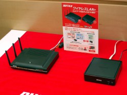同施策では、インターネットコンテンツが視聴可能なテレビへ対応した無線LAN機器セットのレンタルサービスや、同サービスを接続サービスとの一体提供を実施する予定でいると発表。会場では、BUFFALOの新型無線LAN機器“Air Station NFINITI Giga”と、ソニー製液晶テレビ“BRAVIA