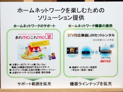 また、ホームネットワークに関してはサポート体制も充実させていくと発表。提供中の有料サポートサービス「あれmoこれmo」において、主要メーカーのテレビやゲーム機、BDプレーヤーや無線LAN機器の設定までまるごとサポートするなど、サポート範囲を拡充する予定であることも明らかにした。