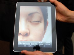 なお、同社はこれまで、年老いた際のシミュレーション画像など、自分の顔写真の未来と過去の姿を見られるiPhone用アプリ「HourFace」などを開発し、同アプリではiTunesの総合ランキング1位を獲得するなど実績を持っている。会場ではそのほかにも、顔写真に好きな言葉を喋らせることができる「PhotoSpeak」などが用意され、Android用アプリも登場したこともアナウンス。また、スタッフからはこれらiPhone用アプリがiPadでも問題なく使えるようになるとのコメントを聞くこともできた。