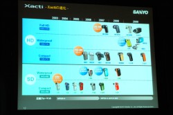 世界市場については、「PVC(ポケットムービー)が台頭してきているが、XactiはPVCに近いモデルとして先駆けて投入してきた。今後は従来型ビデオカメラにはなかったアプリケーションが増え、ますますPVCの市場は拡大していくものと思う。その市場に対応していき、2010年度デジタルビデオカメラの販売目標としてグローバル200万台へチャレンジしていく」と宣言した。