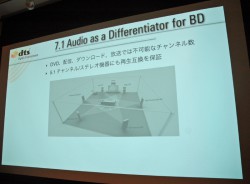 会場では「ダイ・ハード 4.0」のBDに収録されているDTS-HD Master Audio 5.1ch音声と、5.1chを7.1chにアップミックスした音声を比較するデモも行われた。