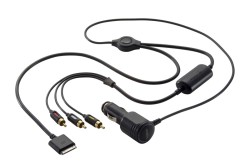 いずれもiPhoneやiPod内の音楽などを車内で楽しめるようにする専用ケーブル。無線ではなく有線での接続のため、FMトランスミッターのようにノイズや混信による乱れがないという。