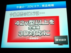 また、3D VIERAのラインナップのさらなる拡大にも言及。西口氏は「3Dテレビは大画面の方が没入感を得られるので、今は42V型が一番小さいサイズとしている。ただし3Dはゲームなどの需要もあるので、中小型機種の開発も行っている。発売時期等はタイミングを見て判断する」と述べた。
