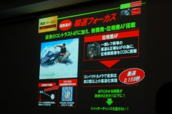同社独自のイメージセンサー「スーパーCCDハニカムEXR」を進化させ、一眼レフカメラで採用されている位相差検出方式によるAFをコンパクトデジカメで可能にしたモデル。通常、AFのスピードは「0.5秒程度」(同社説明員)のところ、本機ではイメージセンサー内に被写体との距離を瞬時に測定する“位相差画素”を組み込むことで、最速0.158秒の高速AF「瞬速フォーカス」を実現。高倍率ズーム使用時や動く被写体を撮影する際のピント合わせもスムーズに行えるようになっている。有効画素数は1,200万画素。