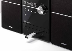 また前面にはUSB端子を備え、USB機器に保存したMP3/WMAフォーマットの音楽ファイルが再生できる。音楽CDからUSB機器へMP3(128kbps)の録音も行える。