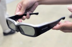 付属品としてアクティブシャッター方式の3Dメガネを2個同梱。眼鏡のみの販売については「現在検討中」(同社説明員)とのことだ。