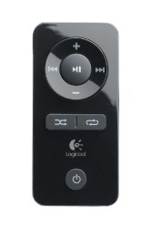 付属のワイヤレスリモコンは、最大10mの距離から電源オン/オフ、音量調整、再生、一時停止、シャッフル、スキップ、リピートなどの基本操作が行える。