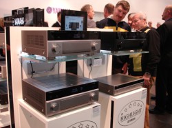 Hi-Fi製品の中に目を移してみると、プリメインアンプも品数が豊富なことに気付く。A-S2000の流れを汲むチューナー搭載プリメインアンプ「R-S300」「R-S500」「R-S700」などが展示されていた。これらは全機種ドックポートを搭載し、別売りのアクセサリー「YDS-12」でiPod、「YBA-10」でbluetooth、「YID-W10」でヤマハ独自ワイヤレス技術のAirWiredに対応する。