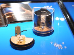 デノンブースの真ん中には華々しく“100周年”アニバーサリー・コレクションモデル「A100」シリーズの7機種がハイライトされている。本シリーズは先日国内でもアナウンスされた通り(関連ニュース)、SACDプレーヤー「DCD-A100」、プリメインアンプ「PMA-A100」、BDプレーヤー「DBP-A100」、9.2ch対応AVアンプ「AVR-A100」、アナログプレーヤー「DP-A100」、MCカートリッジ「DL-A100」、そしてオーディオヘッドホン「AH-A100」で構成されている。
