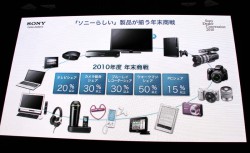 栗田氏はさらに、製品カテゴリーごとのシェア目標も公表。「テレビは20%以上、BDレコーダーは30%以上が目標。サイバーショットが8月の金額シェア1位になったカメラについては、金額ベースで30%以上を狙う」とし、さらに「最近販売好調のウォークマンは50%以上を狙いたい。PCについては15%以上が目標」と続けた。