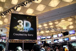 会場の入り口で、最大のスペースを使って展示されているのが3Dソリューション。真ん中には「3D world Created by Sony」と書かれた大きな看板があり、その周囲を関連展示がぐるりと取り囲んでいる。