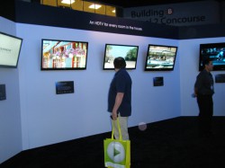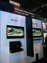 ソニーブースでは、新SXRDプロジェクターやAVアンプなどESシリーズの3D対応製品を中心に、フルHD液晶テレビの豊富なラインナップやAVセンターを用いたソリューションなどが展示された。
