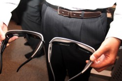 3Dメガネは、視力矯正用メガネの上からの装着感を高めた新型のもので、1つ同梱している。なお3D映像の表示時に、ボタンを押すことで2D映像として視聴できる「3D→2D変換」機能も利用できる。