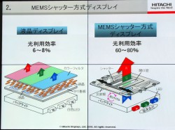 日立ディスプレイズ、光利用効率が液晶の10倍「MEMSシャッター方式ディスプレイ」を開発