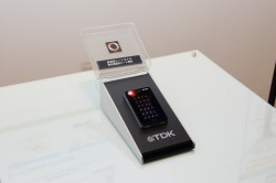 ほかにもQVGAサイズのシースルーディスプレイや、薄く、折り曲げられるフィルムディスプレイなど、「有機EL」に関する新しい技術の参考展示も行われている。シースルーディスプレイは独自技術により、シースルーながら220ppiの高精細化を実現。光取り出し方向を表字面側のみとしたことで、裏面から映像が見えず、プライバシー保護性能を高めている。フィルムディスプレイは0.3mm以下の薄型化を実現。パネル重量が0.05g/平方cmと軽量であり、曲率半径25mmの湾曲部に設置が可能。今回の展示ではリストバンド型ディスプレイの応用事例が紹介されていた。