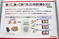 説明員は「3Dで撮影した写真を、2Dディスプレイしか持っていないユーザーにも楽しんで貰えるようにしたかった。将来的にはおそらくアプリでの提供になるのではないか」と説明していた。