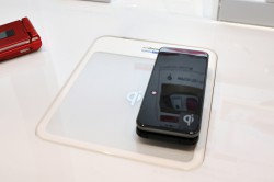 磁界が発生している充電台に、コイル入りバッテリーを内蔵した携帯電話やデジタル機器を置くだけで充電が可能な技術「Qi」も登場した。これまでワイヤレス充電は充電台の決められた位置に置かなければできなかったが、Qiは充電台の上であればどこでも充電でき自由度が高いのが特徴。通常のケーブル接続充電時と比べても、充電時間は変わらないという。
