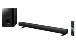 スリムなバータイプの3chスピーカーは密閉指揮で4cm×7cmコーン型スピーカーを6基搭載。テレビラック直置きのほか、付属のスタンドを取り付けて設置することが可能。また、今回同時に発表された専用オプションスピーカー「S-SB5R」を加えて5.1chシステムにグレードアップすることもできる。