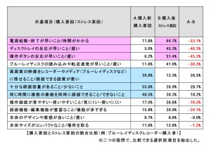 また、調査では製品購入前の重視点と購入後のストレス・不満点の割合比較も実施。起動の早さなど不満点の上位だった項目を製品購入前に重視していたユーザーが少ない一方で、購入時に重視していた画質などに対しては不満とする回答が少なかったことを明かし、「購入前に重視していなかった点が、購入後のストレス・不満点として多く挙げられるという結果となった」としている。