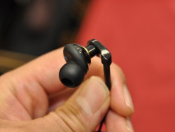 09年秋のヘッドフォン祭でラディウスが発表したカナル型イヤホン“W(ドブルベ)”に、シリーズの“2号機”となる「HP-TWF21」が開発され、今回のイベントに初めて参考出品された。