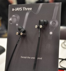 “a-JAYS”シリーズは、ブランド初のフラットケーブルを採用したカナル型イヤホン。最上位機となるカスタムメイドドライバー搭載の「a-JYAS Three」、パワフルな低音再生を特徴とする「a-JAYS Two」、スタンダードモデルの「a-JAYS One」の3機種がラインアップし、予価は最上位のモデルが8,000円前後になる見込み。イヤホン本体からケーブルまで、ブラックに統一されたシンプル&スタイリッシュなデザインも特徴だ。