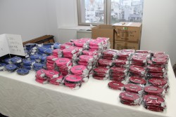 会場には、展示された製品すべての試聴を可能とするスペースが広く設けられた。また、試聴スペースの横には"ご自由にお取り下さい"とされた同社オリジナルイヤホンポーチが用意され、行き交う来場者の人気を集めていた。