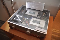 スペックのブースでは、オーディオ銘機賞「銅賞」を受賞した同社初のデジタルプリメインアンプ「RSA-F1」(関連レビュー)が脚光を浴びている。