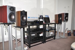 メインの試聴展示では、Mordaunt-Shortのハイエンドスピーカー「Performance 6 Limited Edition」、2ウェイスタカード・バスレフ方式の「MEZZO 8」をCambridge AudioのCDプレーヤー「Azur 840C」、プリメインアンプ「Azur 840A ver2 Class XD」で鳴らすシステムを紹介している。PCオーディオのサウンドも、North Star Design「Essensio」「USB dac32」といった、話題の192kHz/32bit対応DACで聴くことができる。