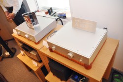 デモンストレーションではスピーカーにB&Wの「802」、CDプレーヤーにTAD「TAD-D600」を組み合わせて試聴を行っている。会場の入口には本機のカットモデルも展示され、内部構成も確認することができる。
