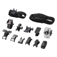 本体には、マルチクリップやヘッドバンドなどの各種アタッチメントが付属。本機を腕や衣服、ヘルメットや車のダッシュボードなどに装着することが可能で、スポーツやツーリング時に自分の目線で撮影を行うことができる。また、付属の防水ケースを使用することで、水深20mまでの潜水撮影も可能。本体が25W×50H×22.5Dmm、質量が50gとコンパクトなサイズを実現している。