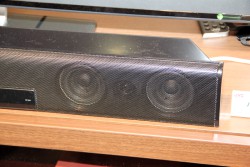 本機は、8cm口径のコーン型ウーファー4基と、2.5cmのバランスドーム型トゥイーターを2基搭載するバスレフ形式の2chスピーカー。最大入力30W+30Wで、再生周波数帯域は70Hz〜40kHz。