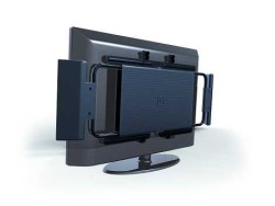 薄型テレビの背面に取り付ける構造を採用した2.1chサウンドシステム。テレビ背面にサブウーファー、両サイドにサテライトスピーカーを配置する格好となる。30V型〜42V型までの薄型テレビに取り付け可能だが、BDレコーダー内蔵型など背面に突起のある薄型テレビには対応していない。