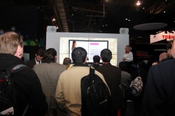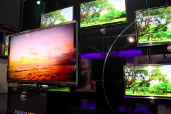 シャープのブースでは、米国時間の5日に開催されたプレスカンファレンスで発表された、70インチ級(69.5インチ)の“AQUOS クアトロン”をアピールしている。