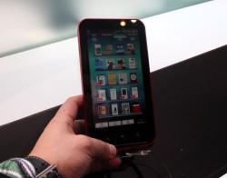 今回米国で初披露となったメディアタブレット「GALAPAGOS」。日本と同様、5.5インチと10.8インチの2モデルが2011年に米国でも発売される。