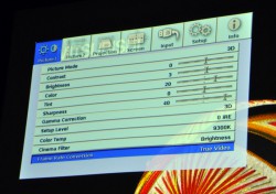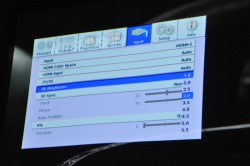 プリセットの映像メニューは「シネマ」「ビデオ」「ダイナミック」のほか、3D映像の表示に最適化した「3D」を設けている。RGBCMYを独立して「色彩」「彩度」「明度」で調整できるカラーマネージメント機能を備え、その他の項目も含めてユーザーが任意に調整した値を3つまで保存できる。なお3D再生時にはメニューから3D映像の明るさを「2.0〜5.5」まで0.5段階刻みで調整できるが、画面を明るく設定したぶんだけクロストークは発生しやすくなる。