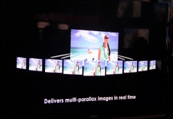ブース中央には裸眼3D液晶ディスプレイを展示するゾーンを設置。65V型と56V型の試作機が置かれていた。また、日本ではすでに発売されている20V型/12V型の裸眼3D液晶テレビも展示された。