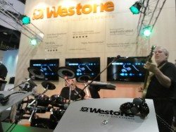 ラスベガスコンベンションセンター、ノースホールにブースを構えるウェストンは、イヤーモニターの新製品「Westone 4」を展示している。