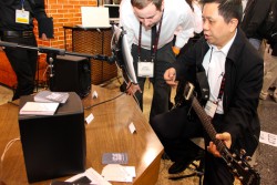 同社のブースでは、これらの機器を使って、実際にギター演奏が行えるコーナーも用意されていた。