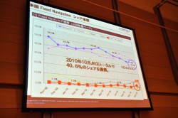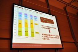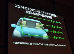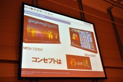カーナビゲーション製品については昨年1月から投入した「MDV-313」が好評を博したことをきっかけに、国内市販ナビ商品のマーケットにおいて、単一商品で3.5%のシェアを獲得したという。阿部氏は今後は2011年度に10%のシェア獲得を実現すべく、新商品の727DTと626DTの積極展開を図ると宣言した。。